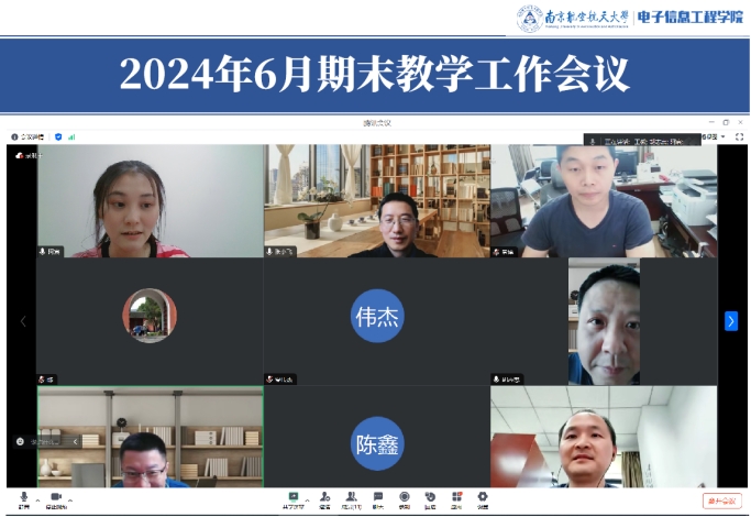 为齐头推进现阶段各项教学重点工作、确保期末教学平稳运行,6月14日下午,91免费视频 副院长张小飞带领本科教学工作团队开展学期末教学工作会议。院长助理夏伟杰、电子科学与技术系主任黄正宇、电子科学与技术系副主任王毅、电子信息科学与技术专业执行负责人胡志忠、信息工程专业执行负责人周博、实践教育中心副主任邱旦峰、教师代表陈鑫及学院教学办成员参与此次会议。