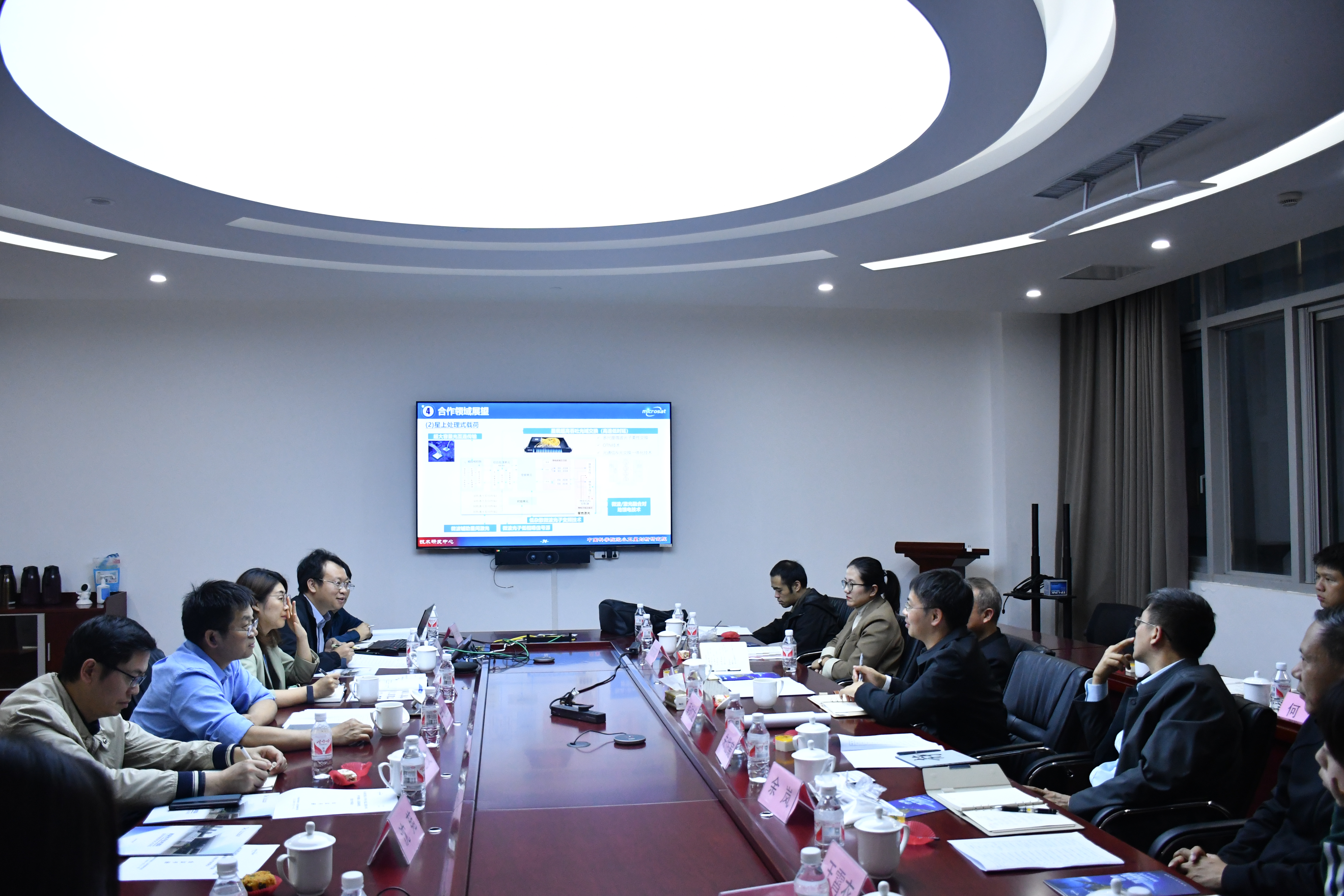 随后,朱岱寅简要介绍了学院科研方向情况,学院教师代表则分别介绍了各自研究领域和围绕星载应用的技术特色。潘时龙表示,希望未来双方围绕国家战略需求,加强关键技术合作,推动平台协同共建,促进人才联合培养,协同探索科教融合一体化合作新方式,顺应时代发展新趋势。双方就全面深化合作展开热列交流。