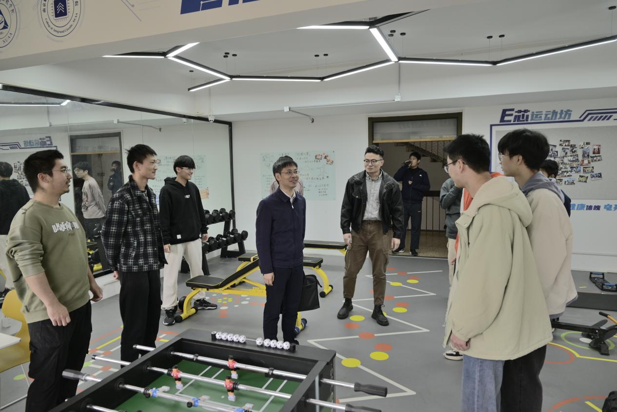 潘时龙走进慧园“一站式”E芯运动坊,与多名正在使用体育空间、进行体育锻炼的学生深入交流,仔细询问使用感受和改进建议。他表示,同学们的实际需要就是学院努力的方向,“学院一定尽全力持续建设、完善属于学生自己的‘一站式’社区”。