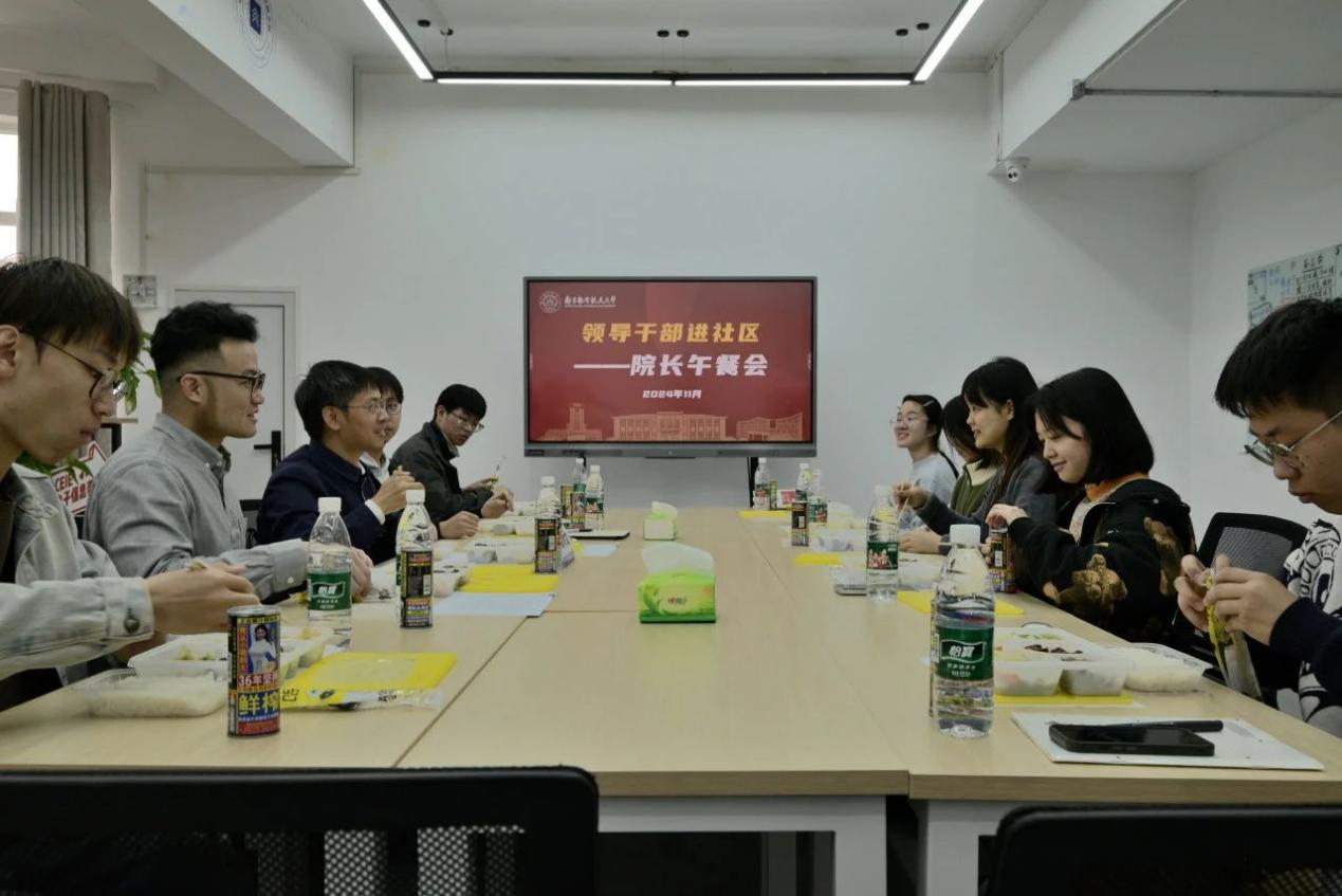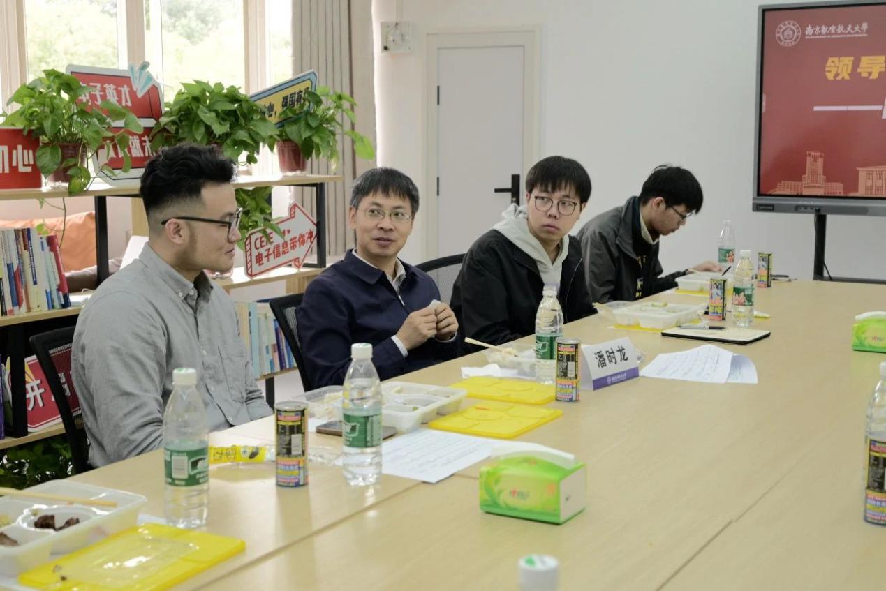 随后,潘时龙与学生代表进行午餐交流。他关心询问搬迁至慧园同学的住宿体验,并鼓励大四考研学生积极调试心态、提前准备毕设、同步关注就业,探索生涯发展的更多可能性。