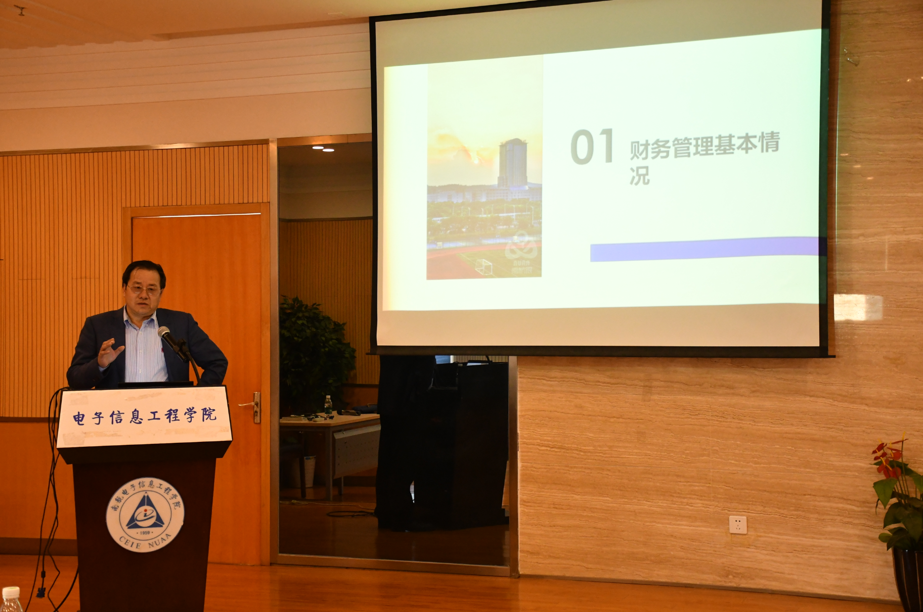 张丕宏为参会老师作《严肃财经纪律,规范经费使用》的辅导报告,报告从学校财务管理体系、国家及学校财经管理制度和规定、财务处目前开展的工作、在报销审核、审计中发现的问题等方面,通过详实的案例,为老师们作了详细的解读,并对规范使用科研经费、诚信科研提出了工作建议。辅导报告增进了与会人员对相关财务纪律的了解,增强了大家的底线意识。