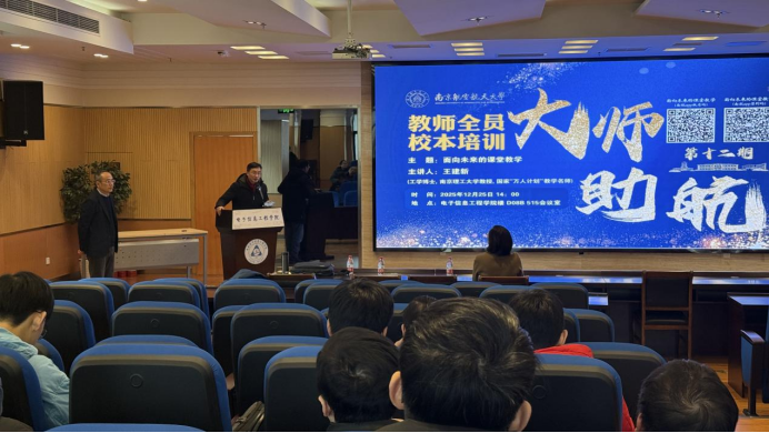 12月25日,国家“万人计划”教学名师、南京理工大学王建新教授来访91免费视频 ,为青年教师作题为“面向未来的课堂教学”的“大师助航”特邀报告。教师发展与教学评估中心副主任杨兰芳、91免费视频 教学副院长张小飞、各学院教师代表共计50余人参加本次讲座。讲座由副院长张小飞主持。