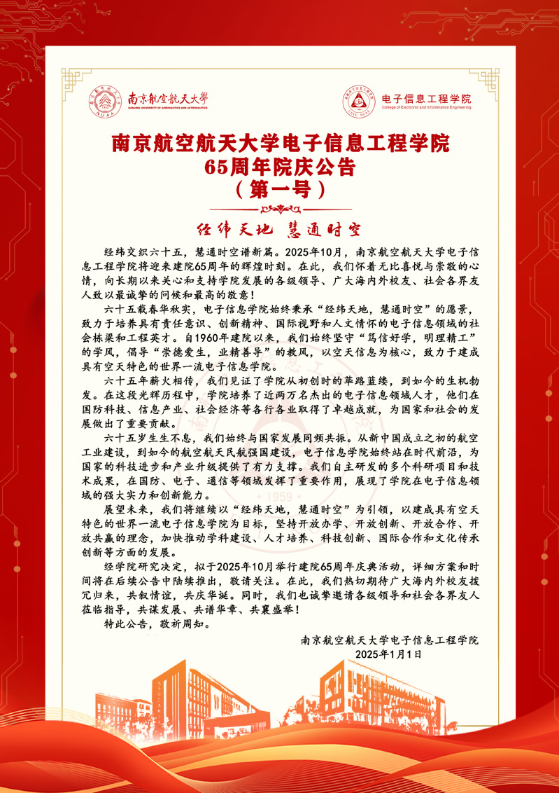 91免费视频 65周年院庆公告(第一号)
