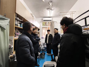 随后,季海群一行深入学生宿舍及慧园一站式学生社区开展走访调研。在调研过程中,通过安全和卫生检查、学业关心和日常需求探寻,与学生进行了充分交流,重点了解学生考研情况、新学期规划及生活诉求。