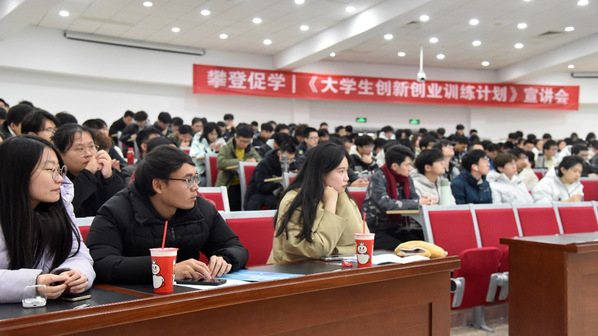 大会伊始,张小飞详细解读了2025年大学生创新创业训练计划政策。他指出创新项目是提升学生综合素质的重要途径,对于培养学生的创新思维、实践能力和团队协作精神具有不可替代的作用。并讲解了科创开展思路和大创选题技巧,鼓励学生们积极申报,争取更多的实践机会和资源支持,为未来的学术研究和职业发展打下坚实基础。