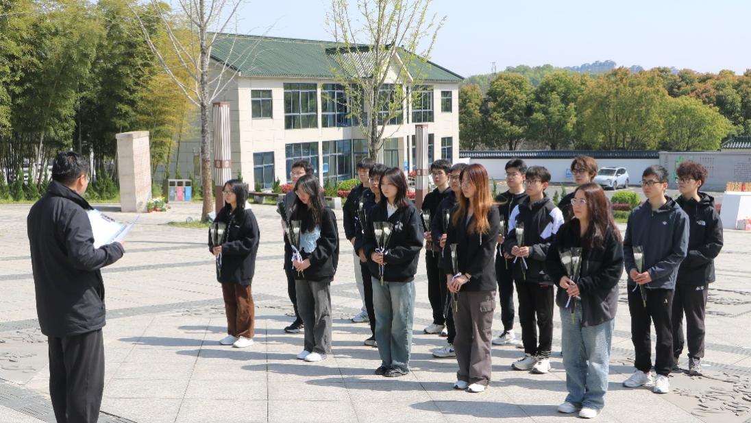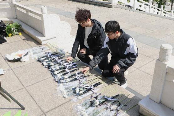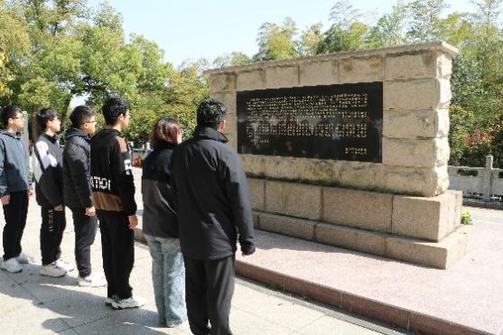 在庄严肃穆的革命烈士纪念碑前,党员同志们缓步上前,将寄托哀思的菊花摆放在碑座周围。支部党员集体瞻仰烈士墓区,驻足阅读镌刻着烈士生平事迹的碑文。当看到多位烈士牺牲时年仅二十余岁,与在场学生年龄相仿时,预备党员张成昊感慨道:“正是这些年轻的生命以他们的热血,铸就了我们民族的脊梁,作为同龄人,我们更应传承这份精神火炬,在科技报国的赛道上跑出当代青年的最好成绩。”