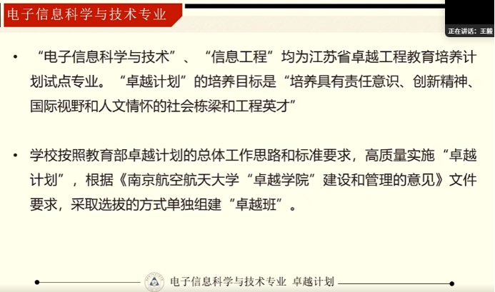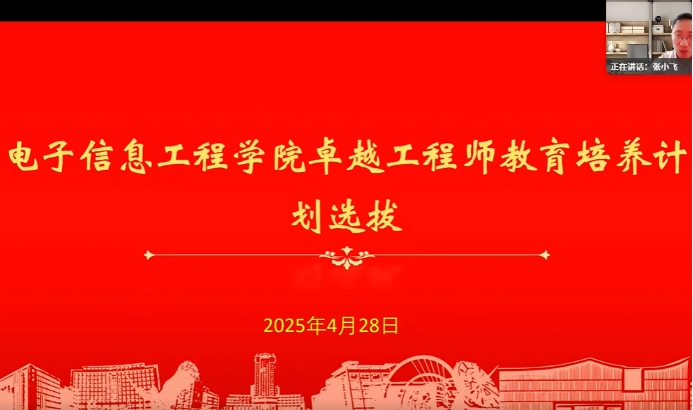 2025年4月28日,91免费视频 2024级卓越计划选拔宣讲会在线上举行。出席本次宣讲会的有学院教学副院长张小飞教授,学院电子科学与技术系副主任王毅副教授,信息与通信工程系副主任晋本周教授以及2024级学生。