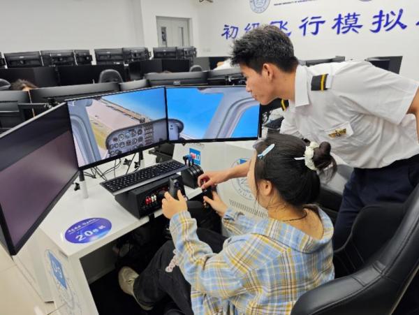 随后,同学们在飞行技术学生的指导下分批进行了飞行操作,体验了从起飞、巡航到降落的整个过程。在模拟飞行过程中,同学们不仅要精确掌握飞行技巧,还要学会在紧急情况下做出正确判断,确保飞行安全,大家深刻感受到了飞行任务的严谨以及对专业知识的严格要求。