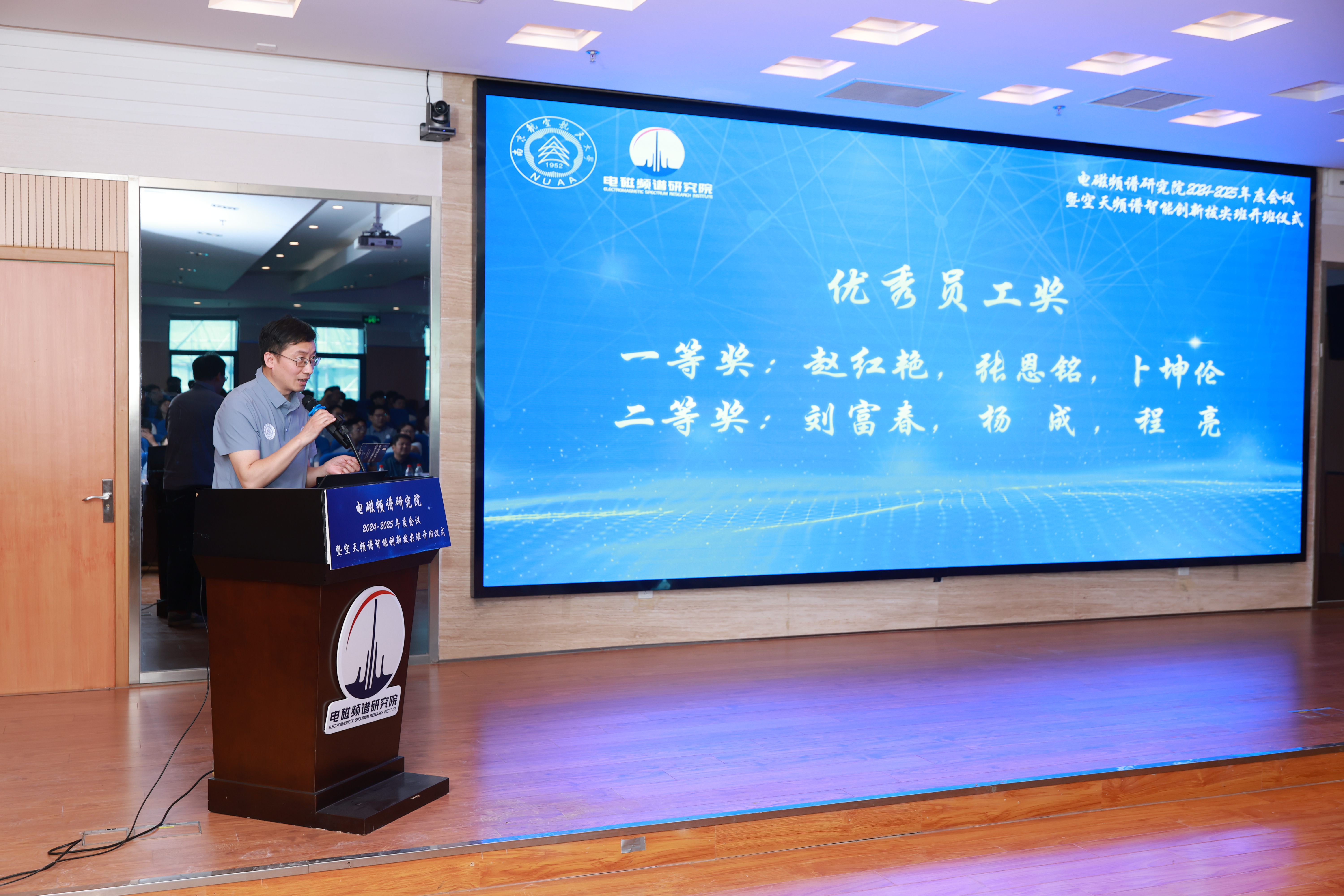 会议第三项议程是优秀科研岗与学生表彰。研究院副院长张小飞教授宣布本年度获得表彰的优秀科研岗与学生名单,在科研岗方面,主要考虑了出勤时间、技术水平与综合表现等因素,在学生方面,针对研究院的公差勤务参与度、学术成果显著性以及重大科研活动参与度分别设置了“家国情怀奖”、“学术贡献奖”和“科研贡献奖”。