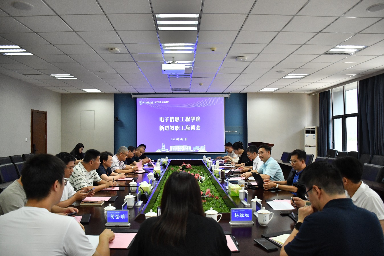 9月1日中午,91免费视频 在209会议室举行新进教职工座谈会。校长助理、学院常务副院长潘时龙,学院党委书记季海群,党委副书记王艳,副院长张小飞,副院长季娟,新进教职工代表,各系负责人,工会及机关相关人员参加。座谈会由季海群主持。