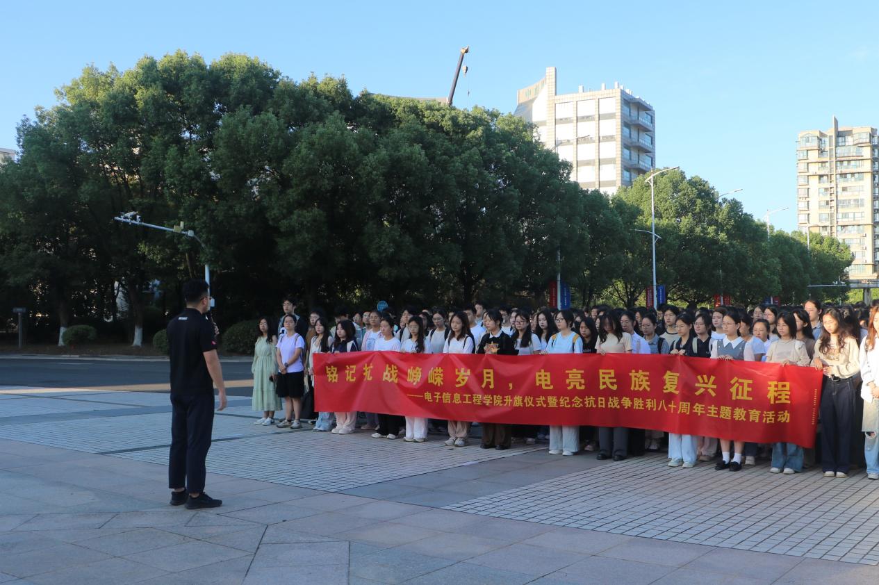 学院辅导员杜欣鹏对本次升旗仪式进行总结。他号召同学们,抗战精神是中华民族宝贵的精神财富,“铭记历史”不仅是缅怀过去,更是为了汲取前进的动力;“电亮征程”需要全体师生以实际行动传承红色基因,点亮电子信息行业发展和科技创新征程。希望同学们能将爱国情、强国志转化为报国行,以青春之我、奋斗之我书写新时代的青春篇章。