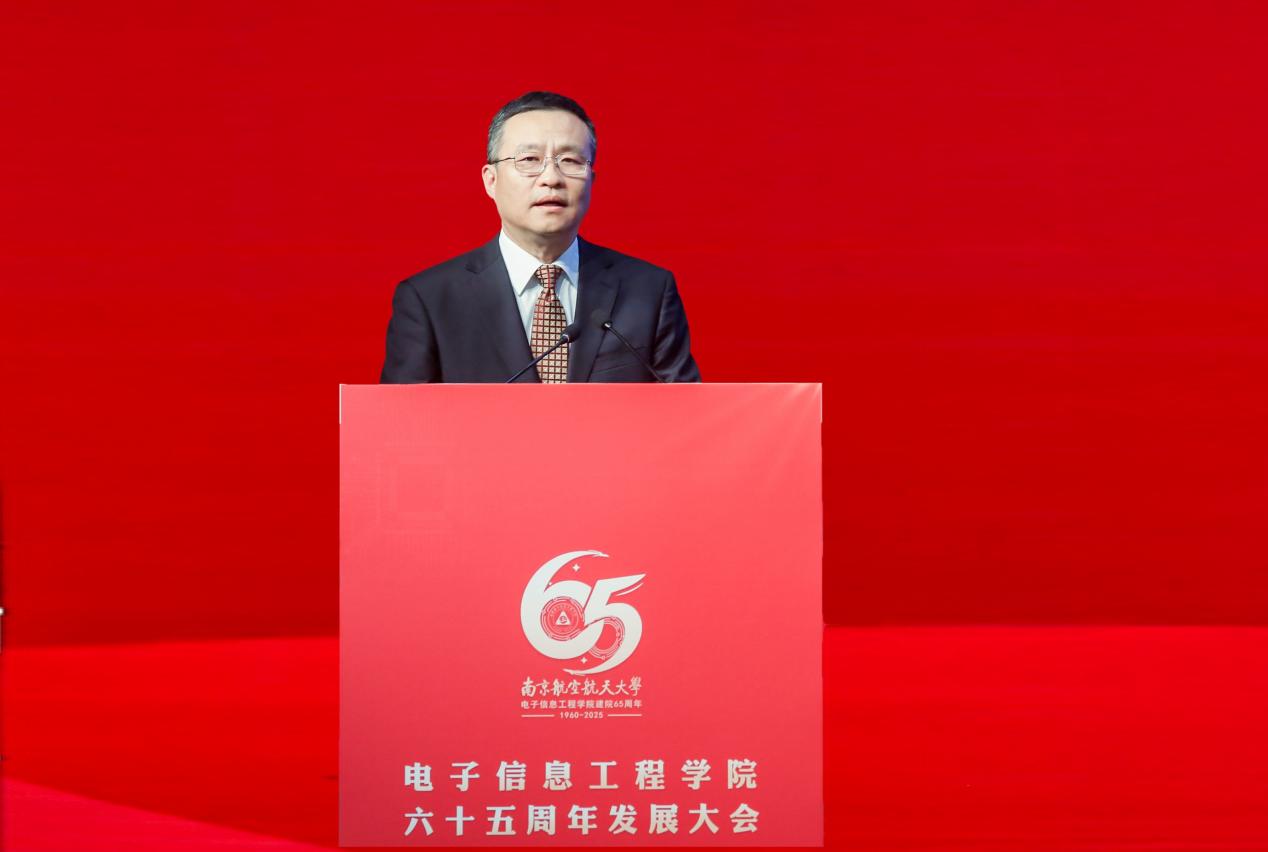 甄良在致辞中指出,学院自建立以来,始终紧扣国家战略需求,坚持育才报国、开放创新,深化空天信息特色融合,探索走出了一条空天特色的高质量创新发展之路,为新型工业化和国防现代化建设作出了重要贡献。希望学院牢记使命、争创一流、走在前列,聚焦战略需求,着力增强科技创新能力,围绕“新赛道”和“卡脖子”等领域,早日产出标志性重大成果;聚焦交叉融合,着力赋能三航特色发展,加强与传统学科的交叉融合,打造更具特色优势的学科集群;聚焦人才强院,着力打造创新人才中心,坚定不移落实好立德树人根本任务,努力率先打造一支世界一流的师资队伍,以更大步伐、更快速度建设世界一流学院。