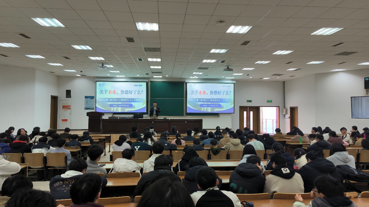 为进一步引导我院2023级学生把握升学就业关键节点、科学规划未来发展路径。3月13日,我院在将军路校区召开2023级本科生年级大会暨升学与就业规划月讲评,学院副院长李茁、新国大苏州研究院教师代表出席,2023级全体本科生参加本次活动,活动由辅导员杜欣鹏主持。