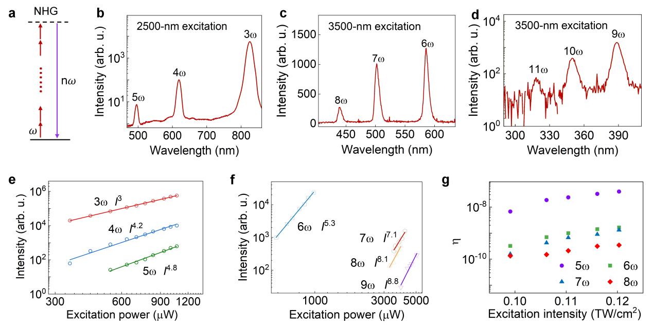 图3 NbOI₂晶体中的多光子高次谐波过程。