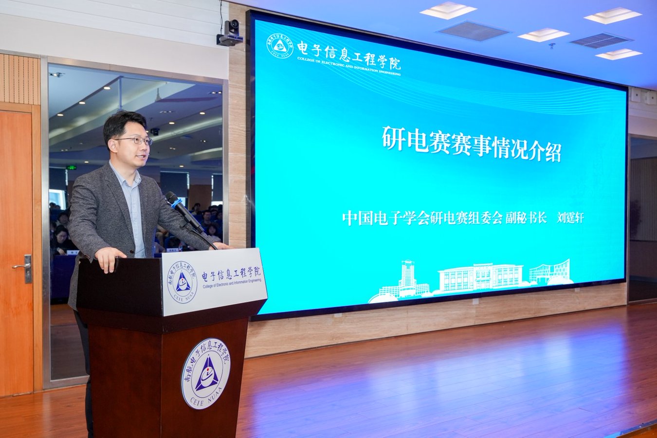 中国电子学会研电赛组委会副秘书长刘霆轩对我校赛事筹备及育人工作给予高度评价,并全面介绍了中国研究生电子设计竞赛发展历程与整体概况。他强调,赛事自创办以来,始终坚守培养电子信息领域高层次创新人才的核心使命,经过多年发展,已成为联动高校、产业与政府的重要纽带,其育人价值获得教育部官方文件认可,在全国高校及行业内形成了广泛且深远的影响力。他勉励同学们踊跃参赛、勇于创新,主动对接产业前沿需求,在竞赛中锻炼创新思维,为解决国家和企业实际技术问题贡献青春力量。
