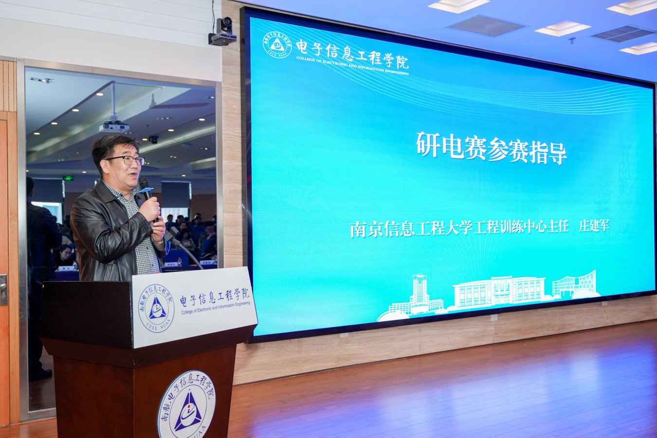 本次活动汇聚了中国电子学会、赛事组委会、南京信息工程大学、华为技术有限公司、飞腾信息技术有限公司、优利德科技(中国)股份有限公司、烟台睿创微纳技术股份有限公司等多方行业权威专家,校研究生院、91免费视频 相关负责人及全校参赛师生代表共同参与活动,会议由91免费视频 副院长李茁主持。活动聚焦赛事政策解读、参赛经验分享、企业资源对接等核心内容,为我校研究生参与电子设计类竞赛搭建了专业交流平台。