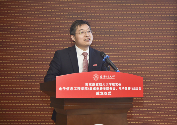吴启晖宣读了《关于同意成立南航校友会91免费视频 /集成电路学院分会、电子信息行业分会的函》,随后,在讲话中表达,今年学校迎来七十华诞,希望通过此次校友分会的成立能够进一步完善横纵结合联系体系,搭建院友和学院合作共融平台,促进院友们事业发展和学院建设发展,更好助力学校,共同为“空天信息化、信息空天化”作出新的更大贡献。